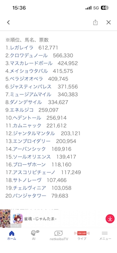 いやー有馬記念のファン投票出ましたねぇ レガレイラ史上最多投票数おめでとうございます🎉🎉 でもわたしはマスカレードボールから行きたい所存であります まずは明後日の阪神ジュベナイルフィリーズから! 2週連続頑張ります(ง •̀_•́)ง