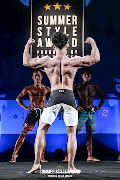 まなとです! 僕のフリーポーズはフロント、ムービング、バック、フロントで構成して20秒です! 途中の腹筋を固める動作の時に撮られた最高の1枚✌️ 腹筋のストリエーションも完璧👌 良い写真でした^_^ 最高の思い出です!